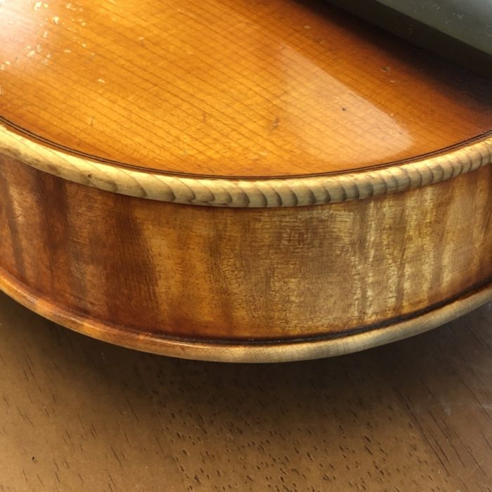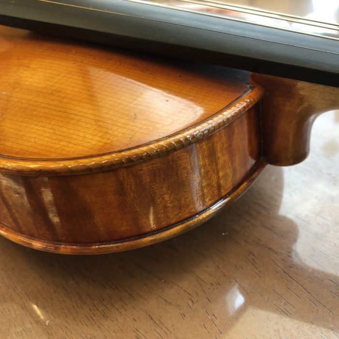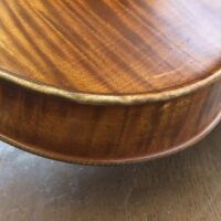 修理事例④ ニスの補修Ⅰ 指板横部分/表板から横板にかけて 2025-07-14 最終更新日時 : 2025-07-15 violin-nakano もともとよく手が触れるネックの裏側にはニスが塗ってありませんがそれ以外にどうしても手があたる場所でニスの劣化が起きることがあります。 ①修理前 指板横の表板から横板にかけての部分。ポジション移動の時にどうしても手や爪が触れてしまう部分は傷がつきやすっくニスの劣化も起こりやすい場所。ニスの落ちた横板は汗を吸いやすい状態で劣化が進みやすくなります。 ②修理後 傷も目立たなくなり横板のニスもほぼオリジナルの状態に。 修理事例一覧 \ 最新情報をチェック /