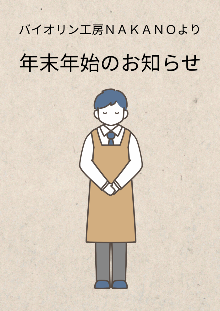 冬季休業日のお知らせ 2025-12-20 最終更新日時 : 2025-12-20 violin-nakano 冬季休業日は12月29日(月)から1月4日(日)までとさせていただきます。 5日(月)より通常営業いたします。よろしくお願いいたします。 \ 最新情報をチェック /