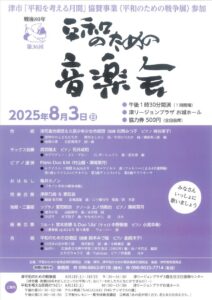 演奏会の案内 平和のための音楽会 2025年 8月 3日 当工房でもチケット販売しております