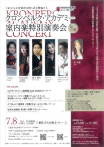 演奏会の案内 クロンベルク・アカデミー室内特別演奏会 2025年 7月 8日 当工房でもチケット販売しております